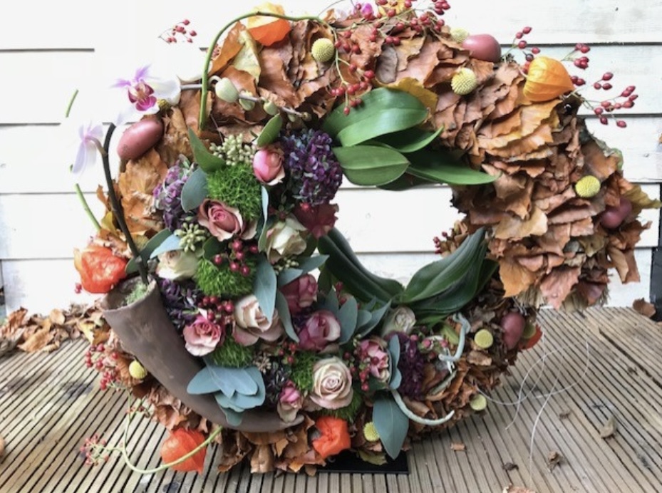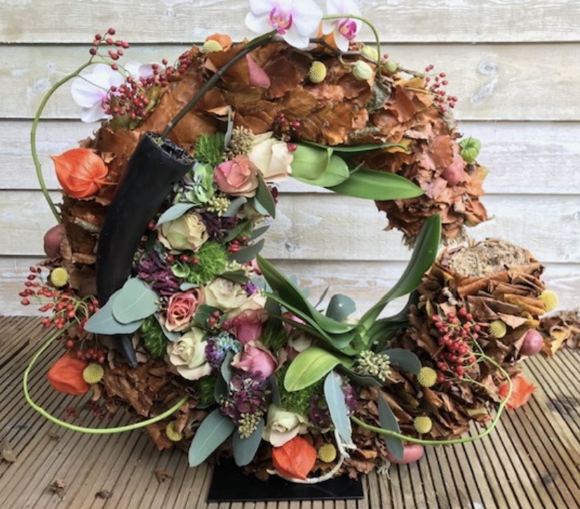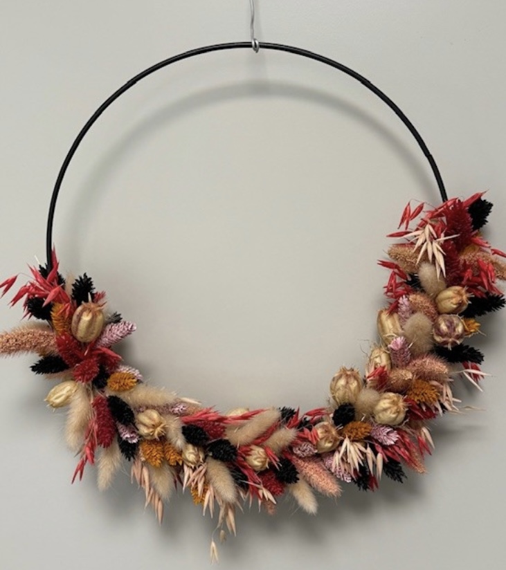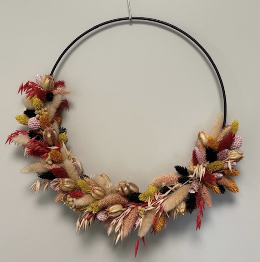 Deze les gaan we een ring of krans bekleden… Er werd aangegeven dat het bekleden van een ring graag werd geleerd. Vind je dit te iel dan kan er ook gekozen worden om een krans te bekleden. De materialen die hiervoor gebruikt kunnen worden zijn divers, denk aan droog of zijdebloemen maar verse materialen die mooi indrogen kunnen natuurlijk ook.