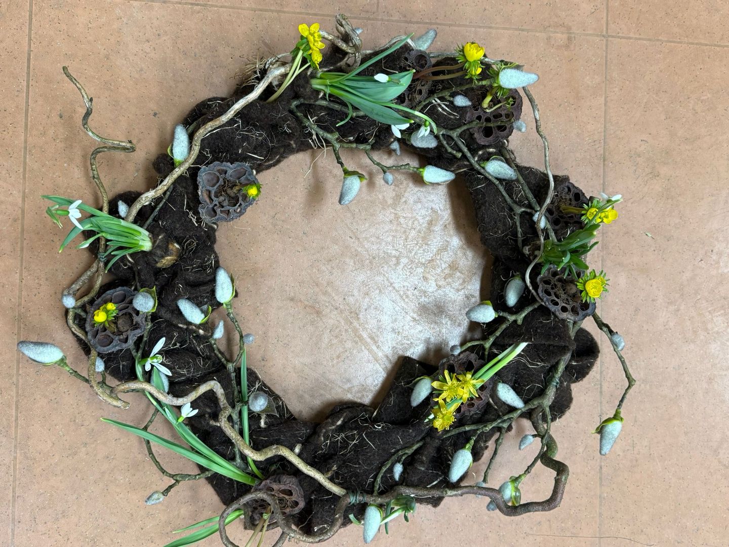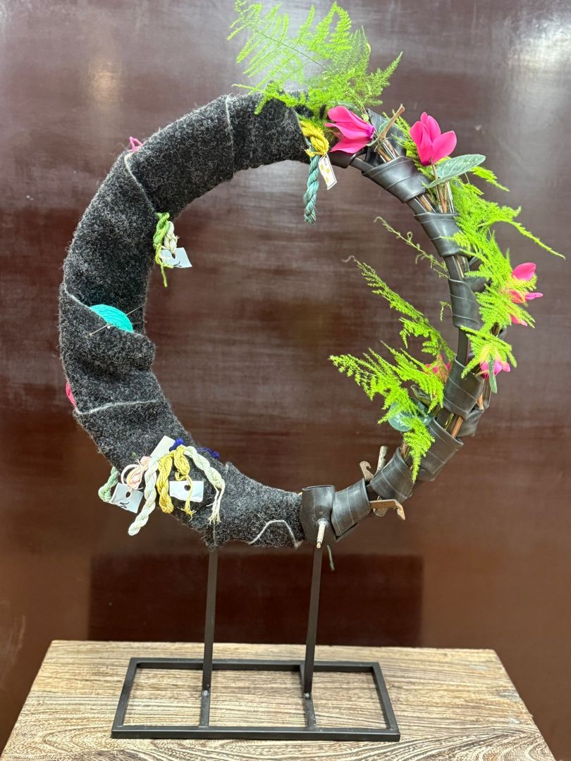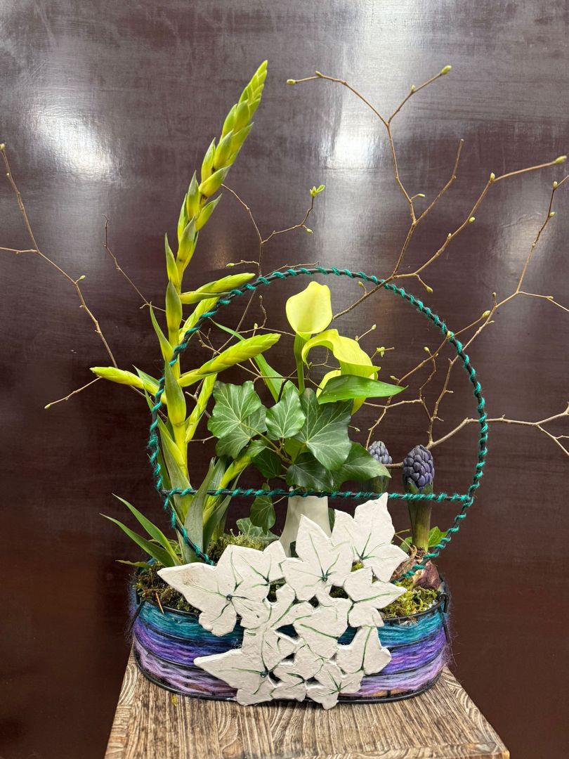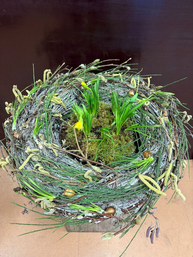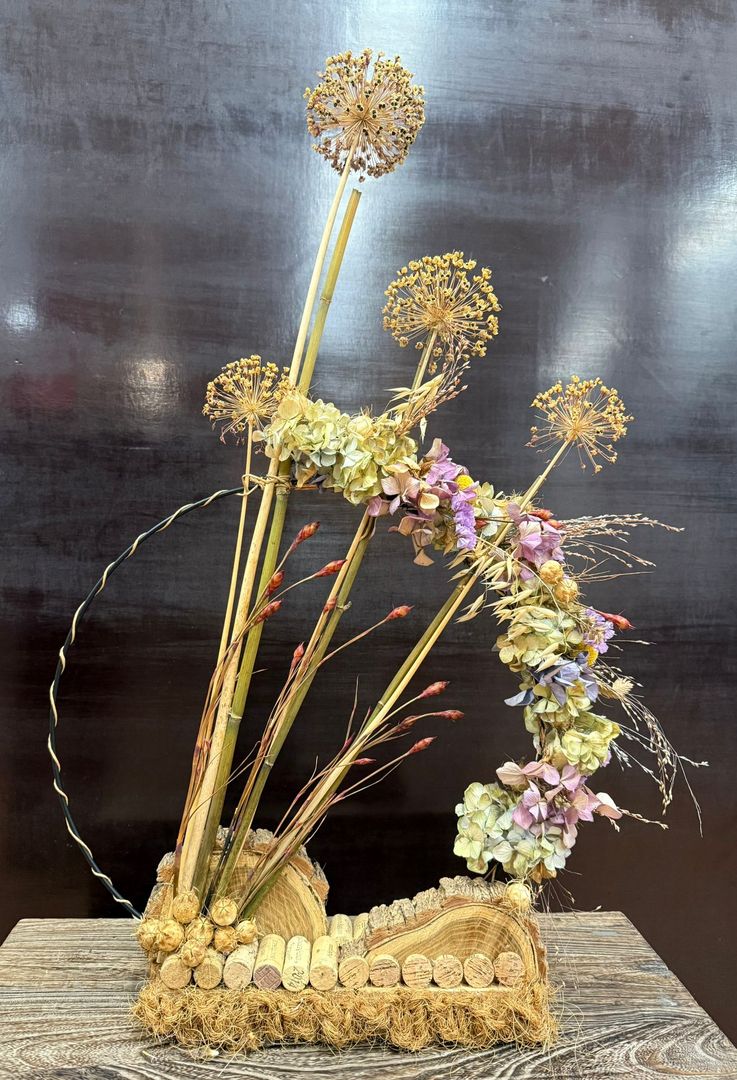Foto's van de Bloemschikcursus 2025 voorjaar woensdaggroep 'Met een ander bijltje hakken'