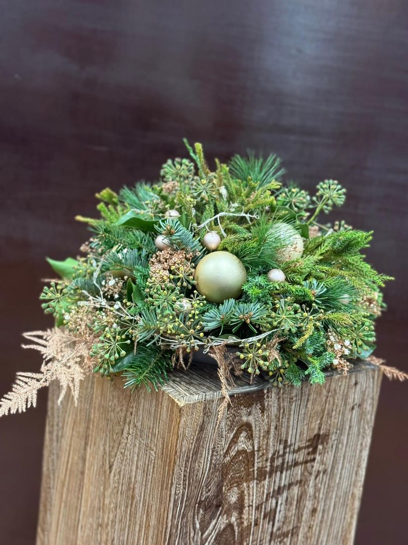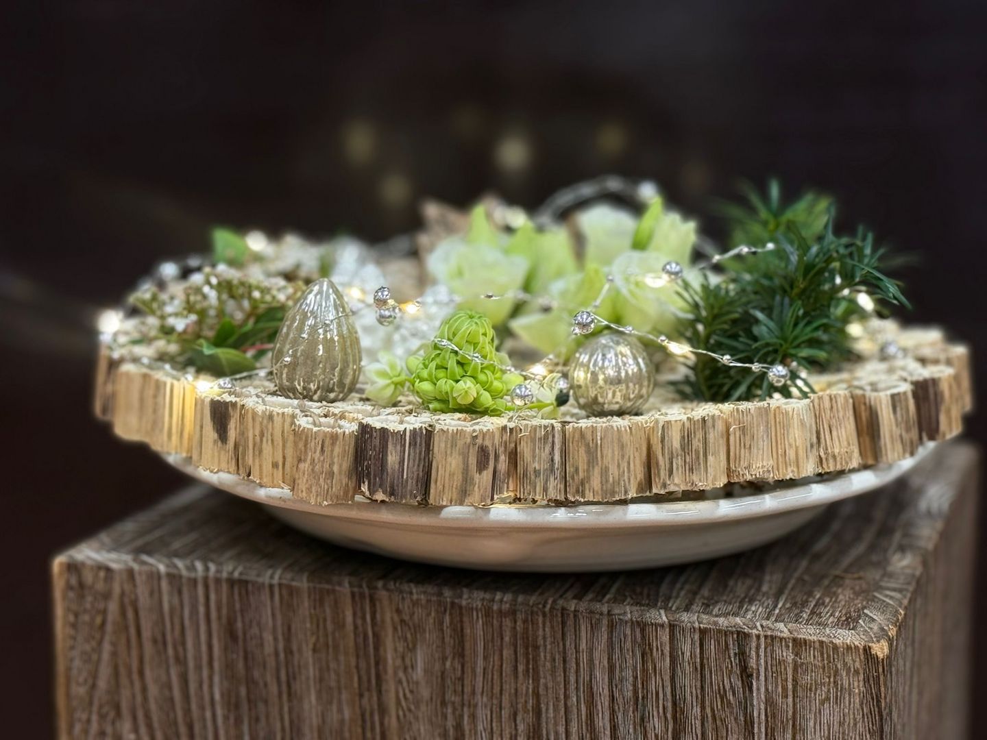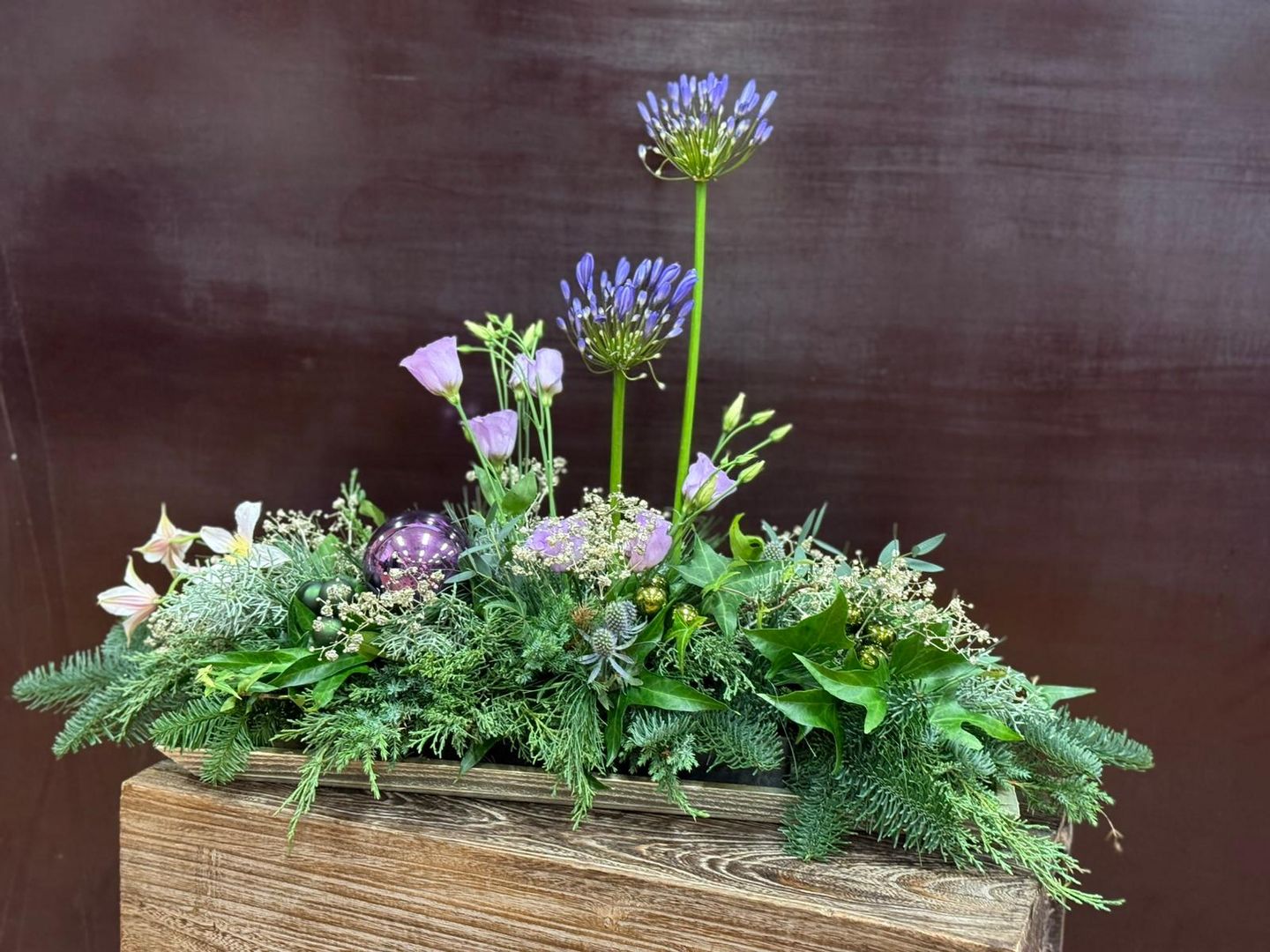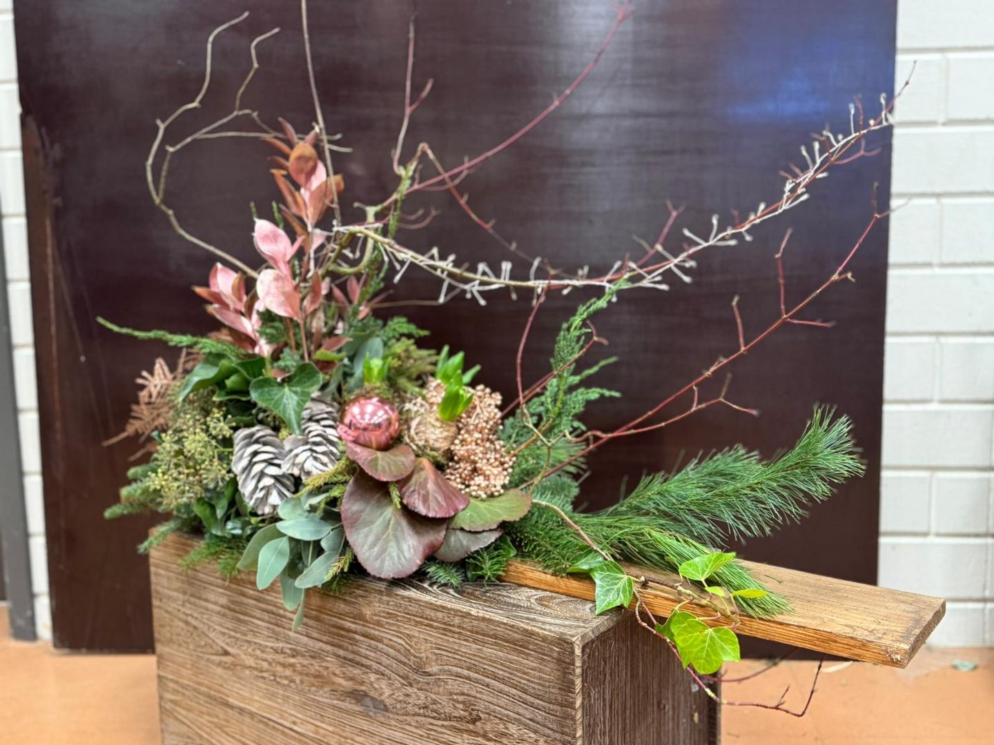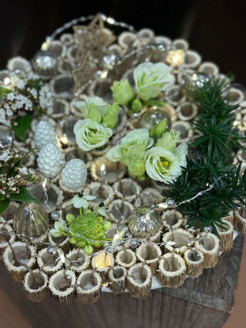 Foto's van de bloemschikcursus najaar ma 2025 Kerst is stijl