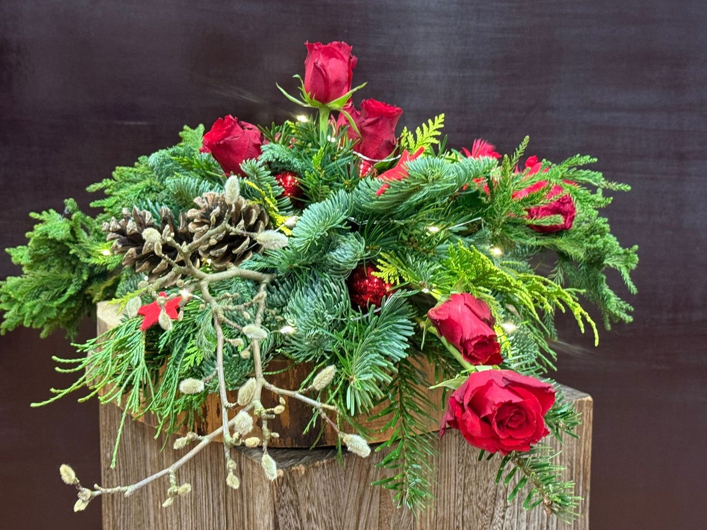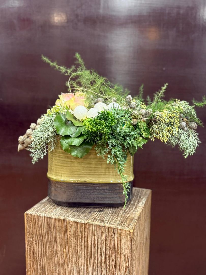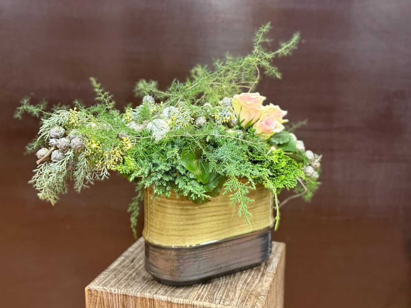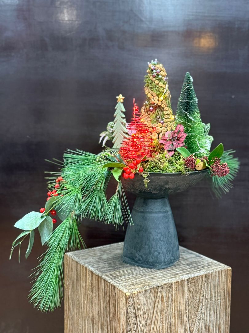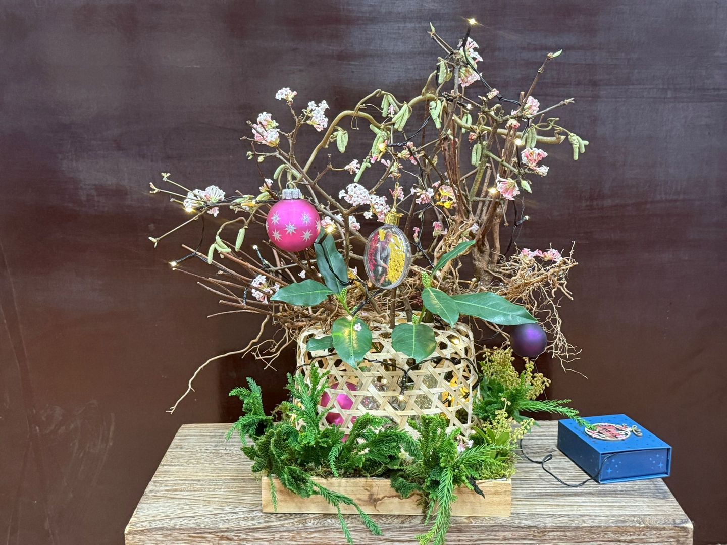 Foto's van de bloemschikcursus najaar ma 2025 Kerst is stijl
